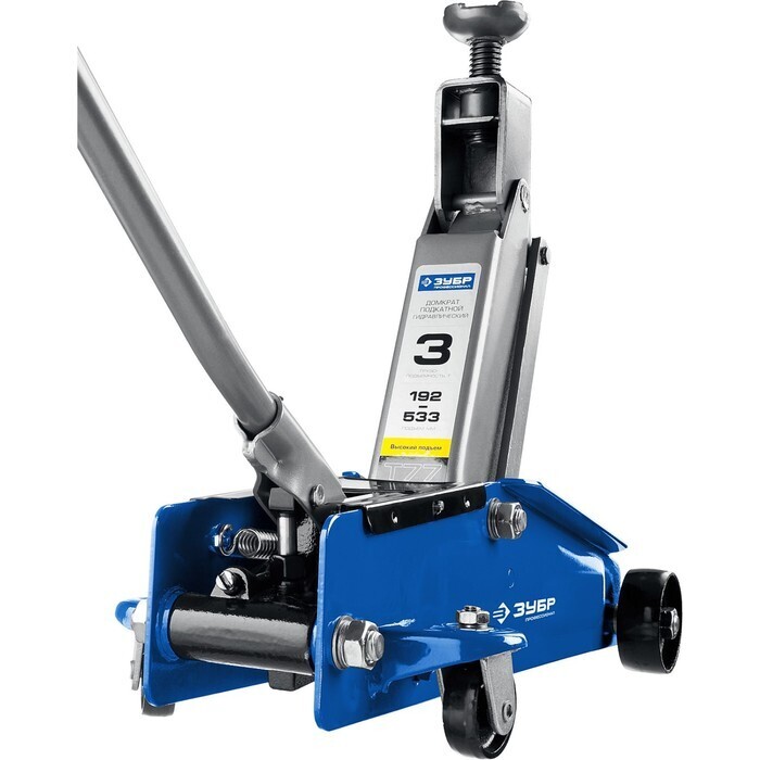 Домкрат подкатной ЗУБР 43055-3-K, с высоким подъемом в кейсе, Т-77-К, 3 т, 192-533 мм