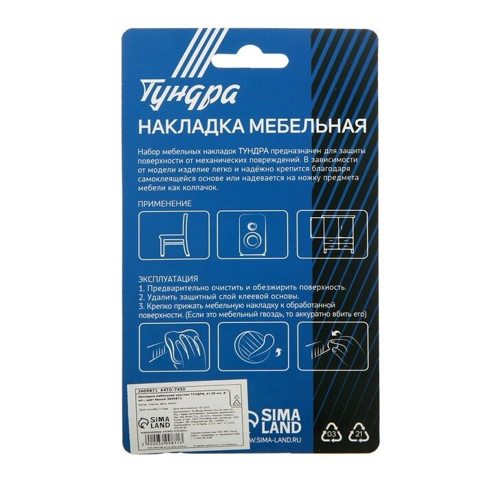 Накладка мебельная круглая TUNDRA, D=28 мм, 8 шт., цвет белый