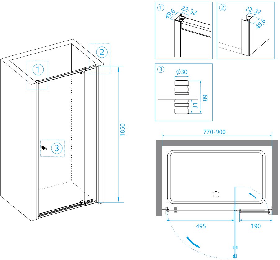 Распашные двери - это про свободу и легкость. Ручка двери выполнена из нержавеющей стали черного цвета. Надежная толщина стекла - 6 мм, рассчитанная на активное использование, - идеальное решение для большой семьи! Технология Easy Clean защищает поверхности и избавляет от известкового налета.
