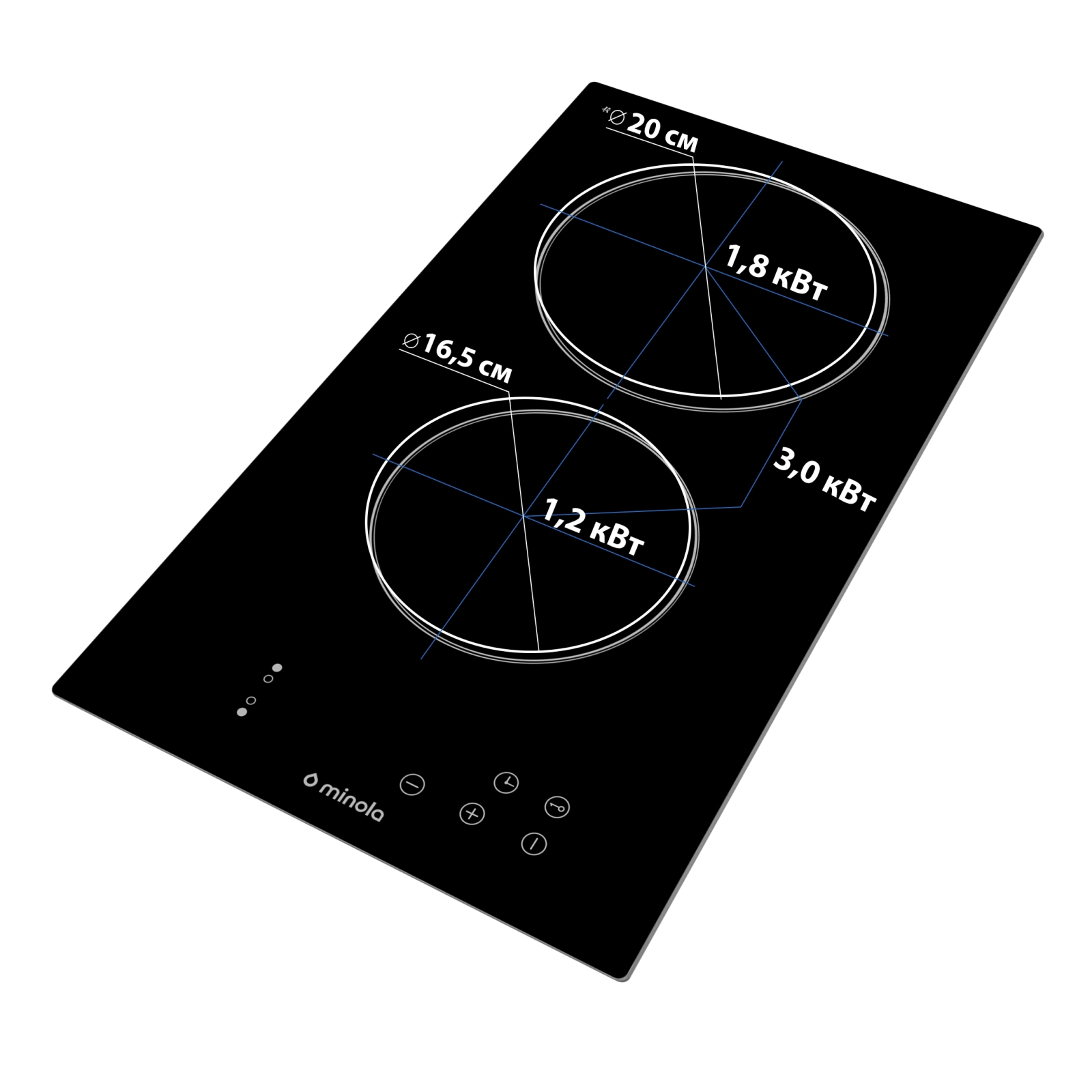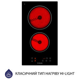 Склокерамічна варильна поверхня Domino Minola MVH 3034 KBL обладнана 2-ма конфорками з типом нагріву Hi-light, який дозволяє їм нагріватися протягом 10 секунд і економити ваш час у процесі приготування їжі.