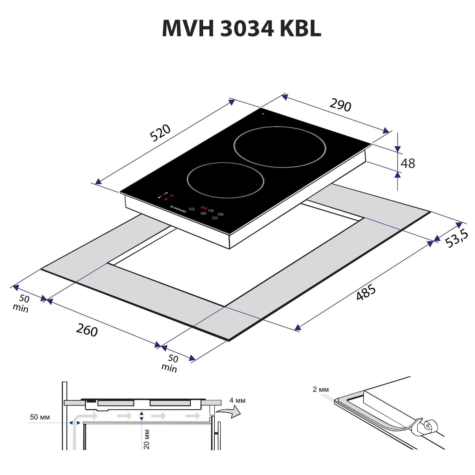 Електрична варильна поверхня Minola MVH 3034 KBL виготовлена з використанням склокераміки Kanger, яка відрізняється своєю стійкістю до перепадів температур та механічних пошкоджень.