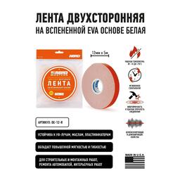 Лента клейкая ABRO двухсторонняя белая, 12 мм х 5 м OE-12-R