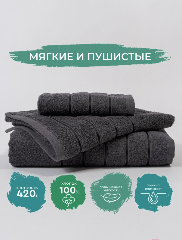 Набор полотенец ВАСИЛИСА Флеш 30x60/50x90/70x140 / 264626 (графит)