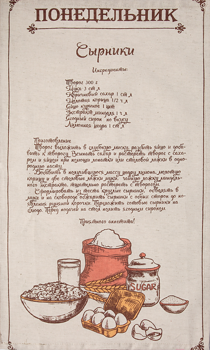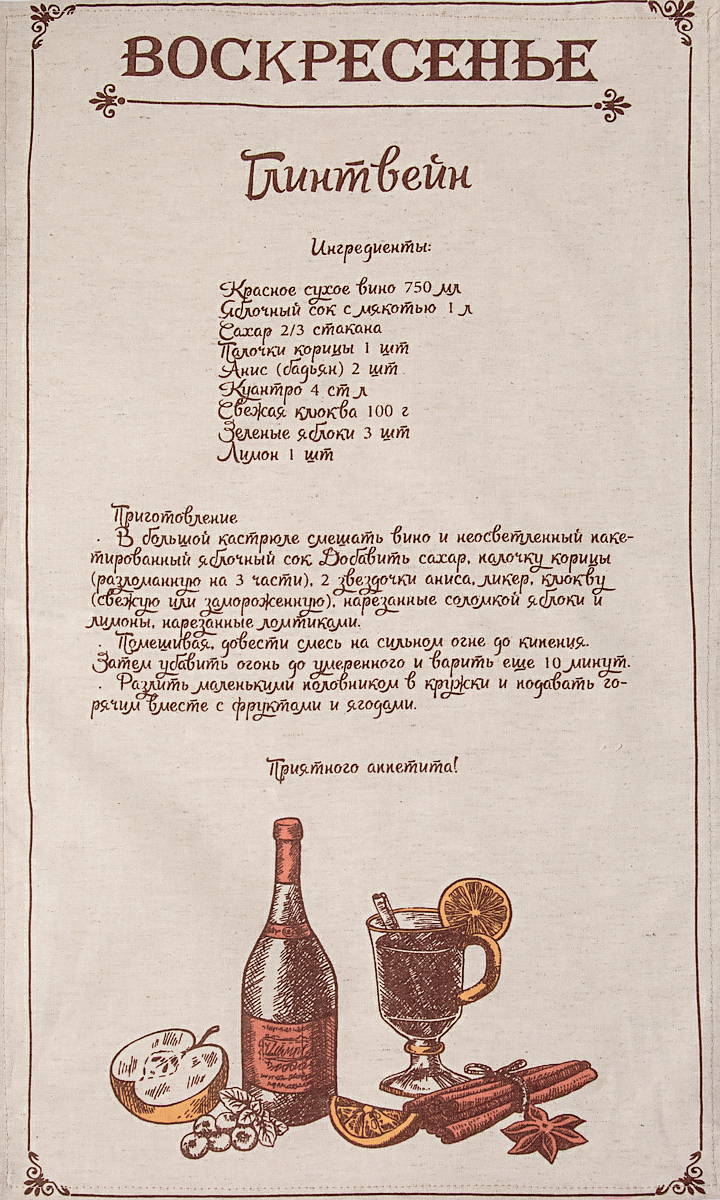 Набор полотенец Лен наш Рецепты недели 152269 (34x61, бежевый/коричневый)