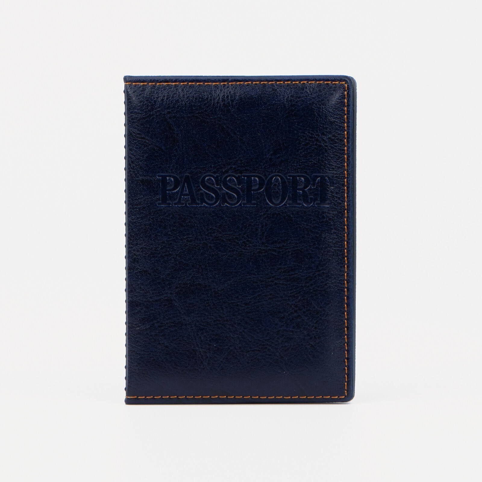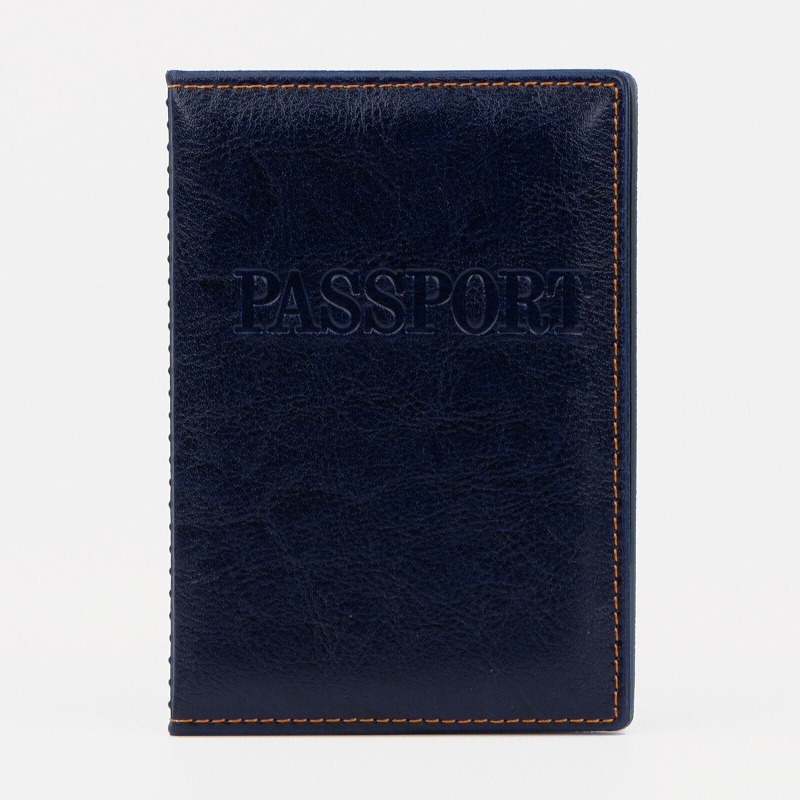 Обложка для паспорта, загран, прошитый, цвет тёмно-синий