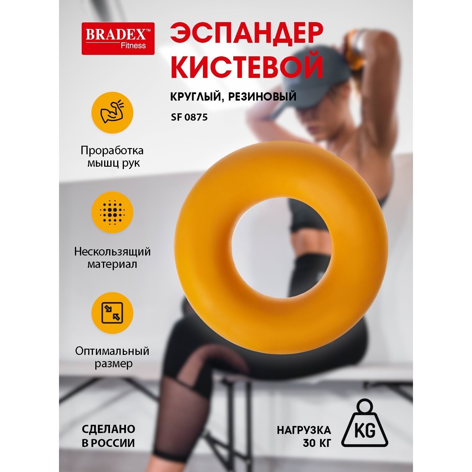 Эспандер кистевой Bradex SF 0875, круглый, резиновый, нагрузка 30 кг