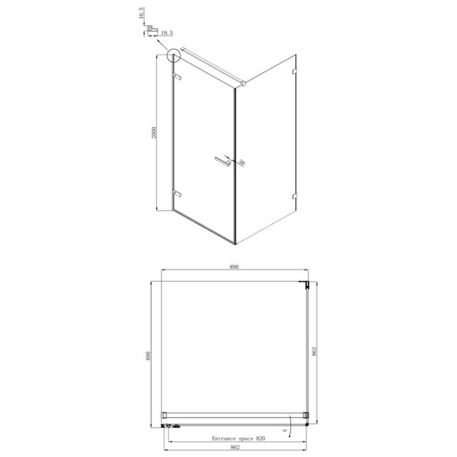 • Размер (Длина × Ширина × Высота) 90 см х 90 см х 200 см
