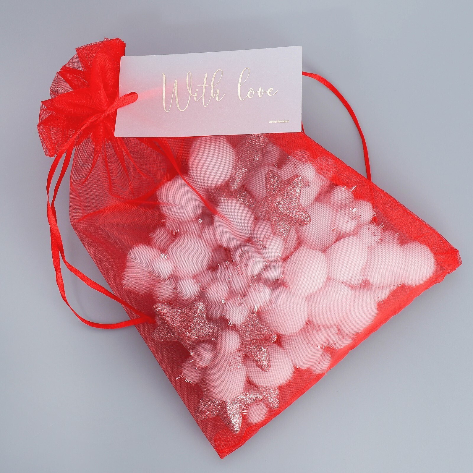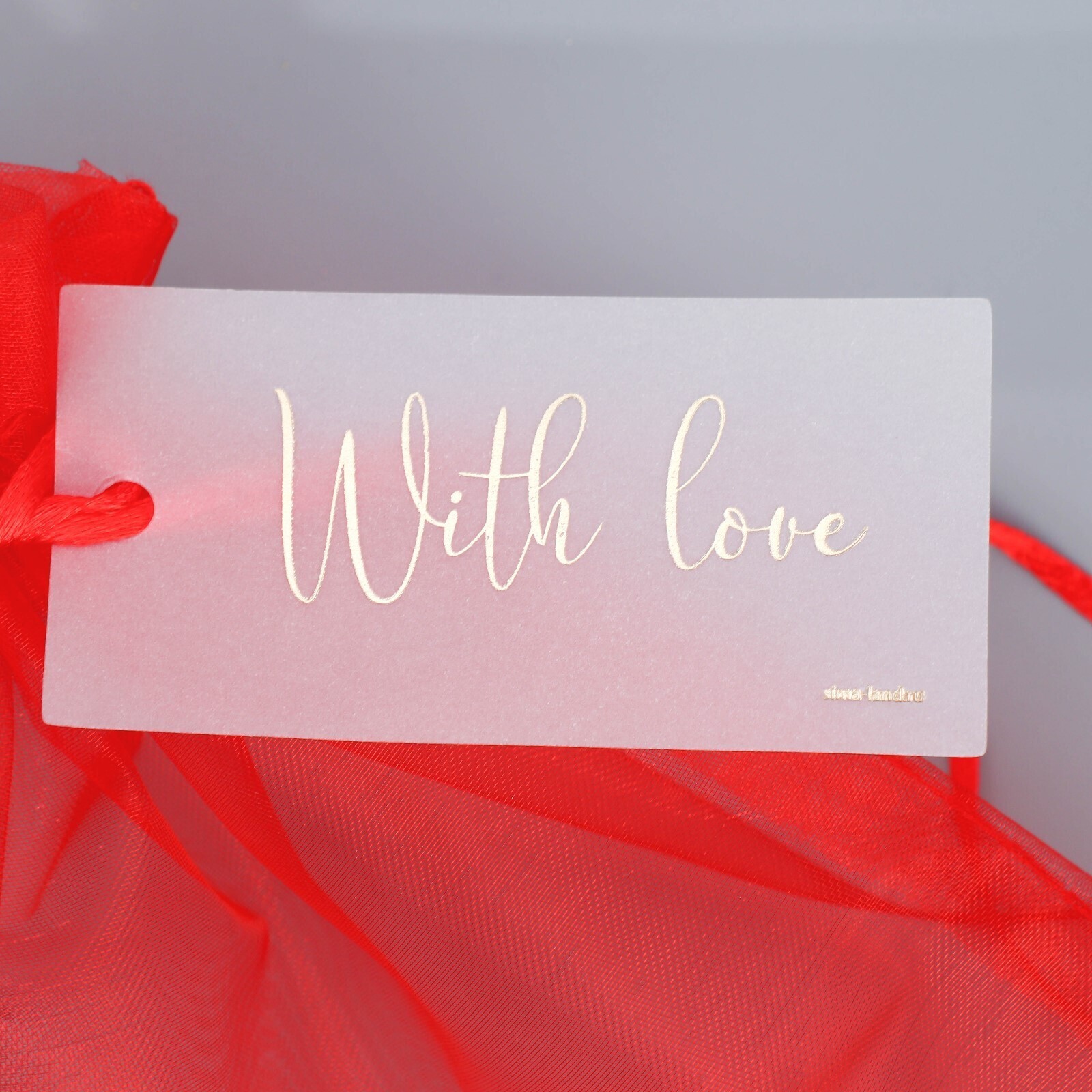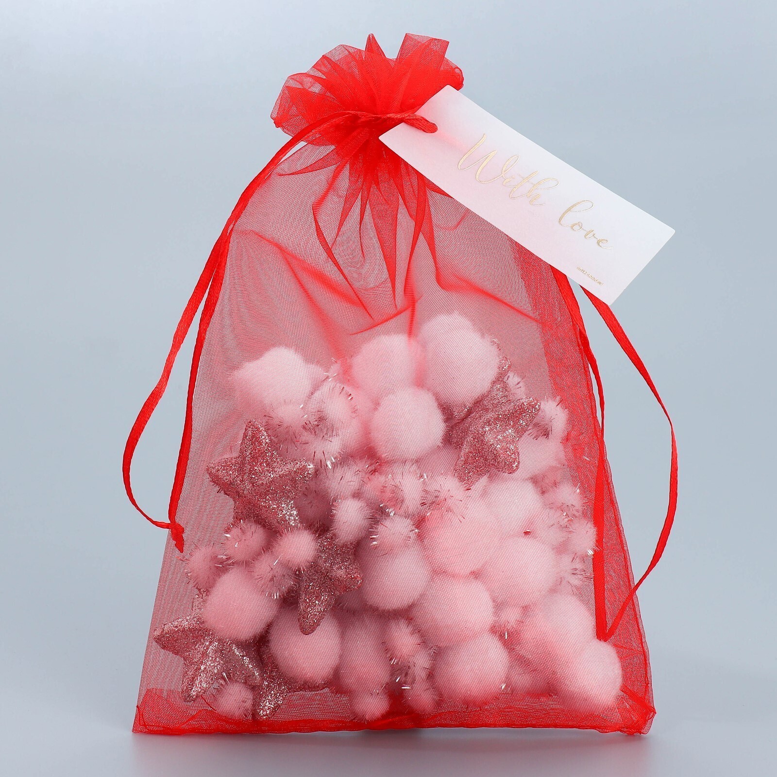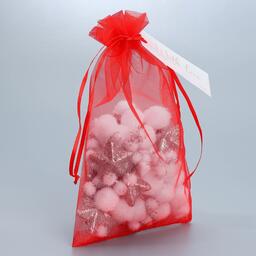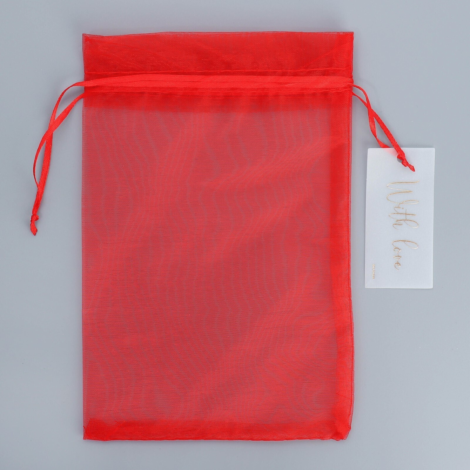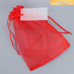 Мешочек подарочный органза красный «Цветок», с шильдиком, 16 х 24 см
