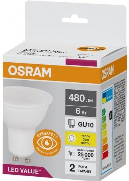 - Модель LED VALUE, PAR16, 6W, 3000K GU10