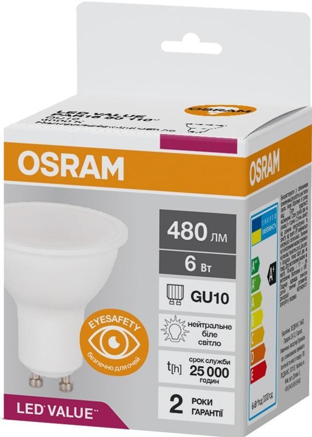 Лампочка Osram LED VALUE, PAR16, 6W, 4000K, GU10 (4058075689671)