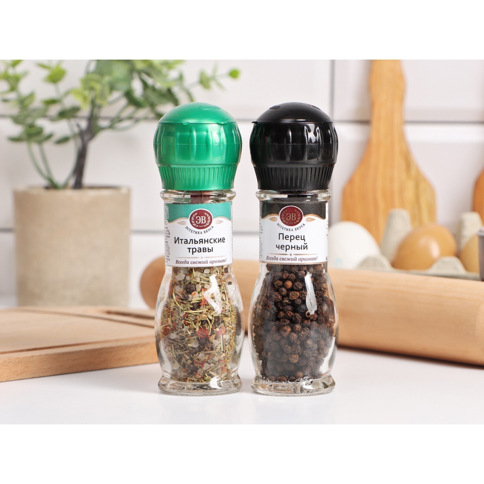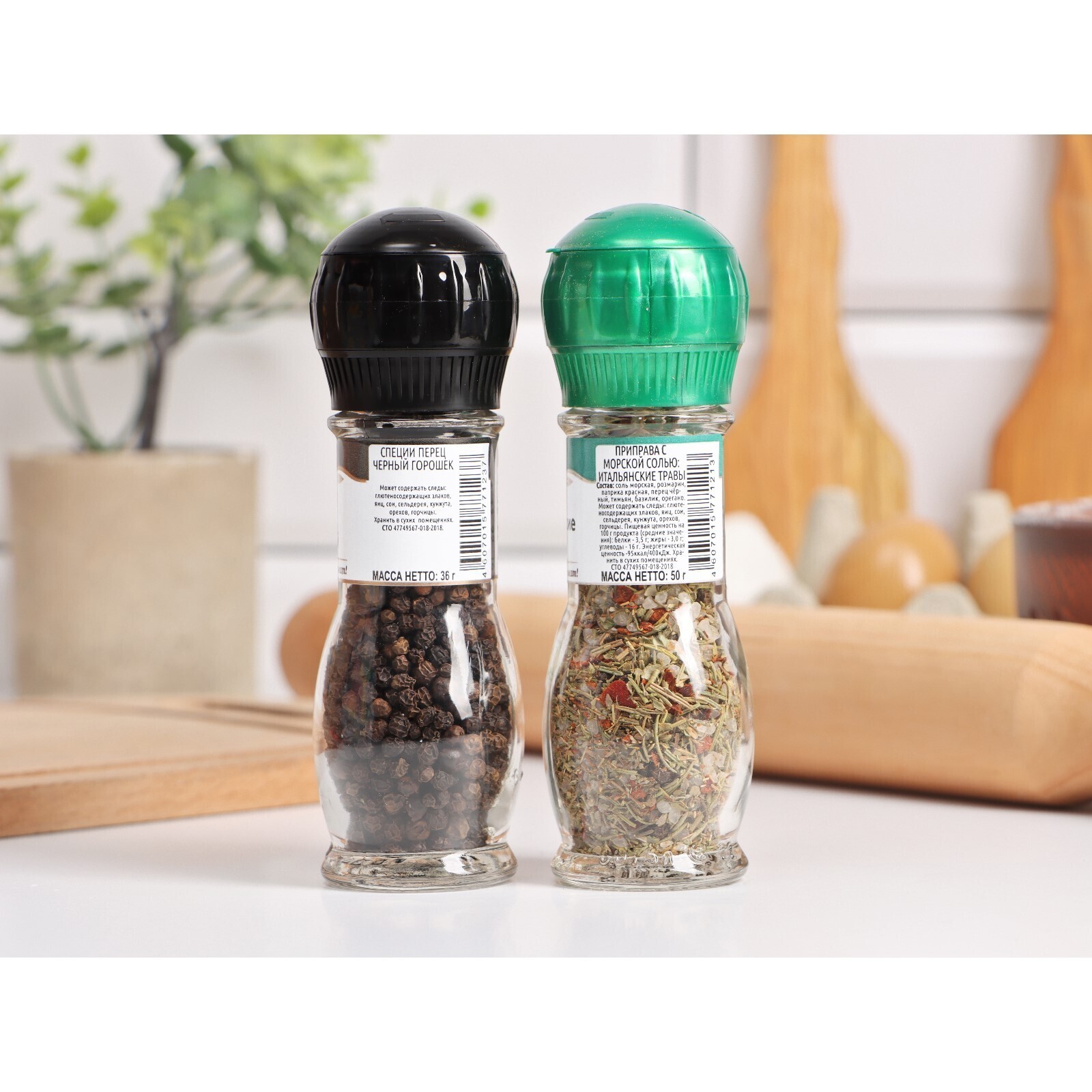 Набор из 2 мельниц, "Перец черный горошек + Итальянские травы"