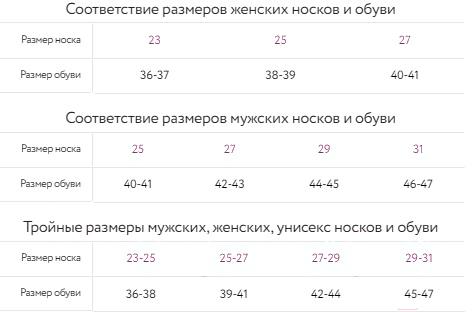 - Размер носков (RU) 25