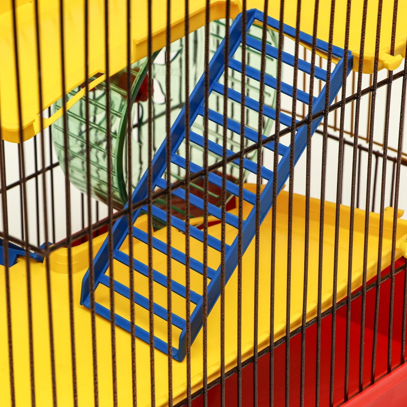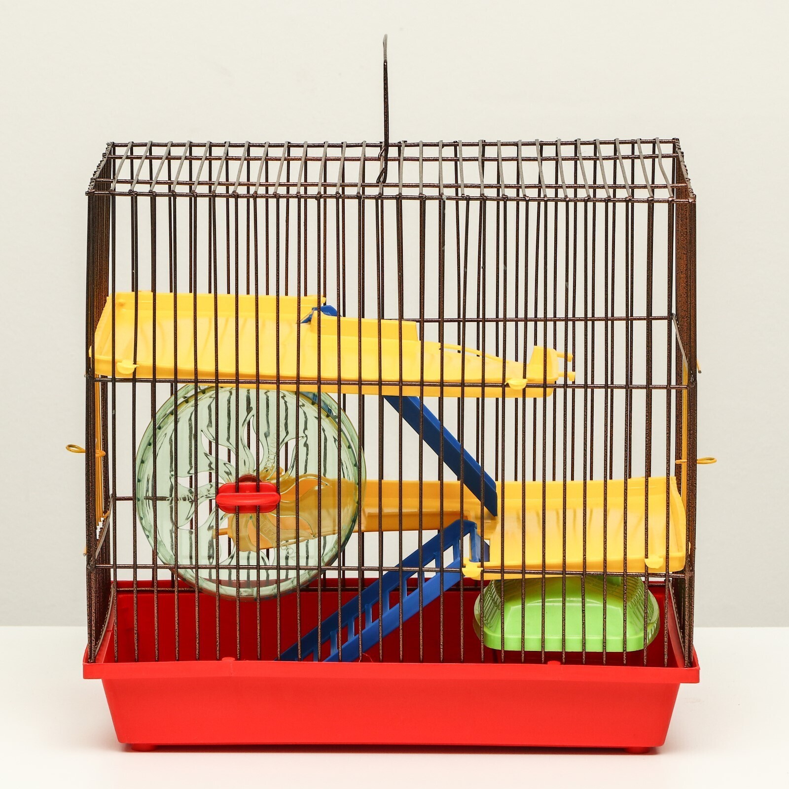 Клетка для грызунов с пластиковыми полками и наполнением, 36 х 23 х 34 см, красный