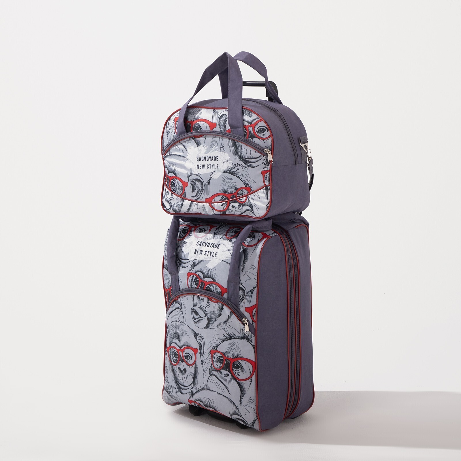 Чемодан малый 20" с сумкой, отдел на молнии, наружный карман, с расширением, цвет серый