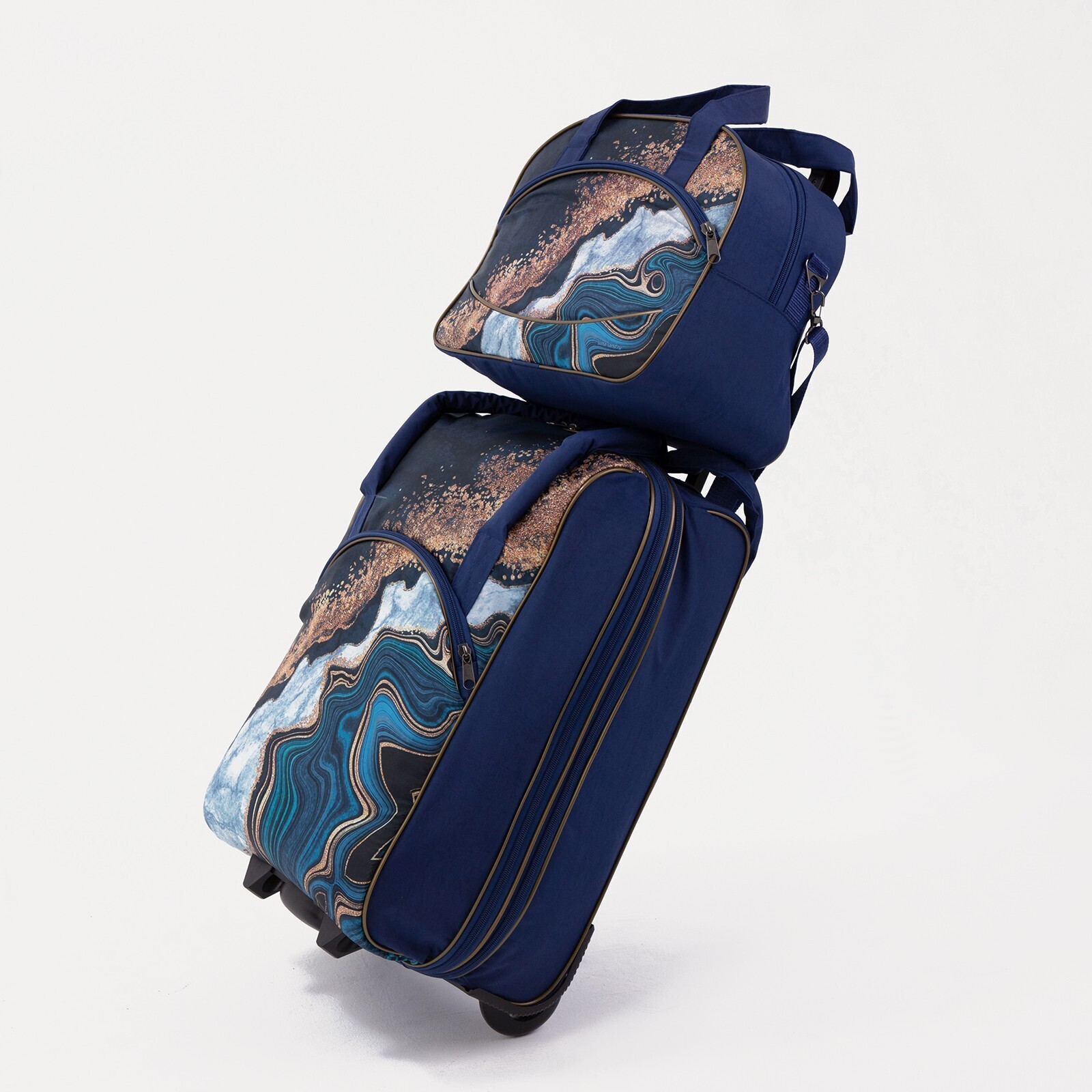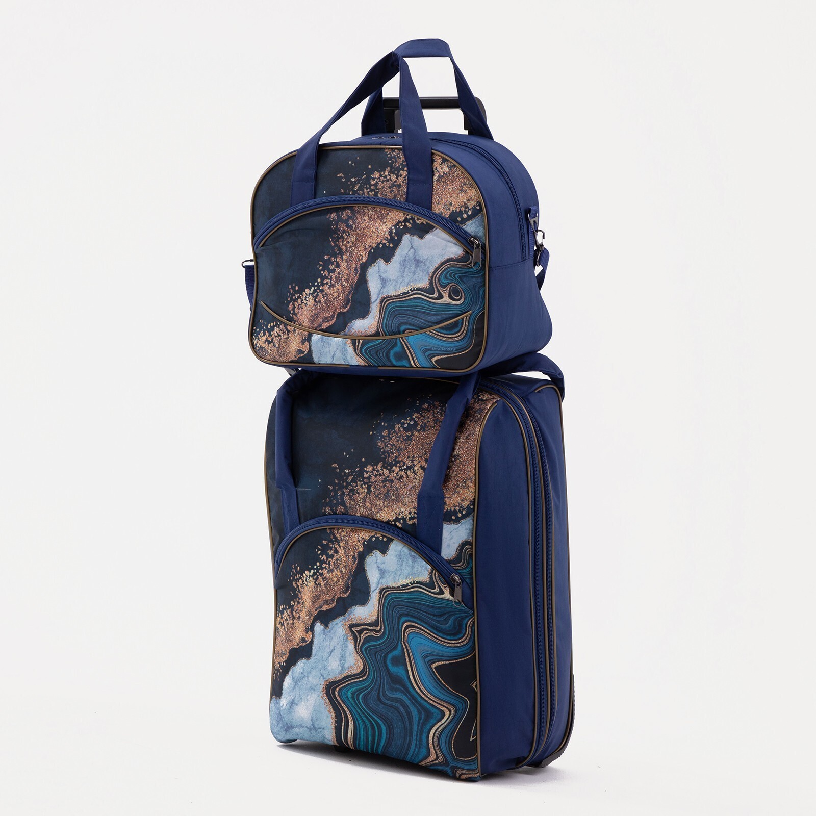 Чемодан малый 35", сумка дорожная на молнии, цвет синий