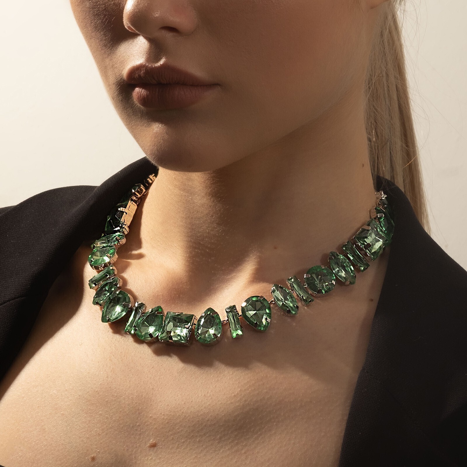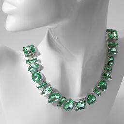 Колье "Драгоценность" геометрия, цвет светло-зелёный в серебре