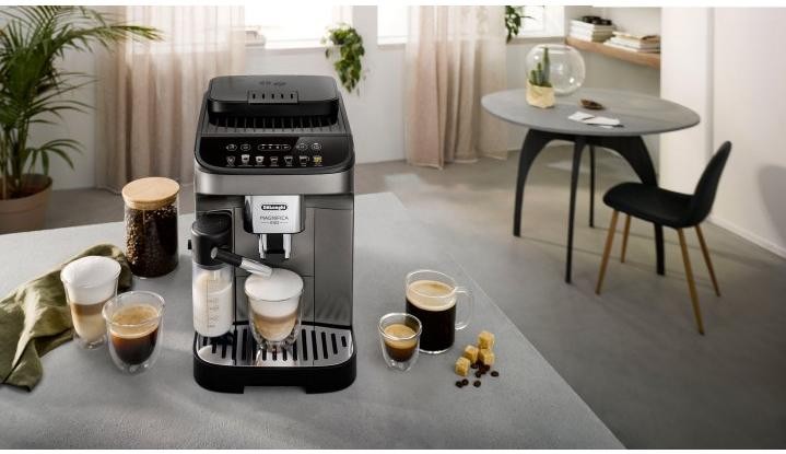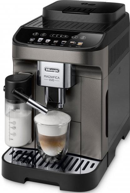 Автоматична кавомашина, потужність 1450 Вт, тиск 15 бар, об'єм контейнера для води: 1,8 л, вбудована кавомолка, об'єм контейнера для зерен: 250 г, 13 ступенів помелу, глечик для молока (автокапучинатор), сенсорна панель управління, програма видалення накипу , очищення та ополіскування, атовідключення, колір виробу титан.