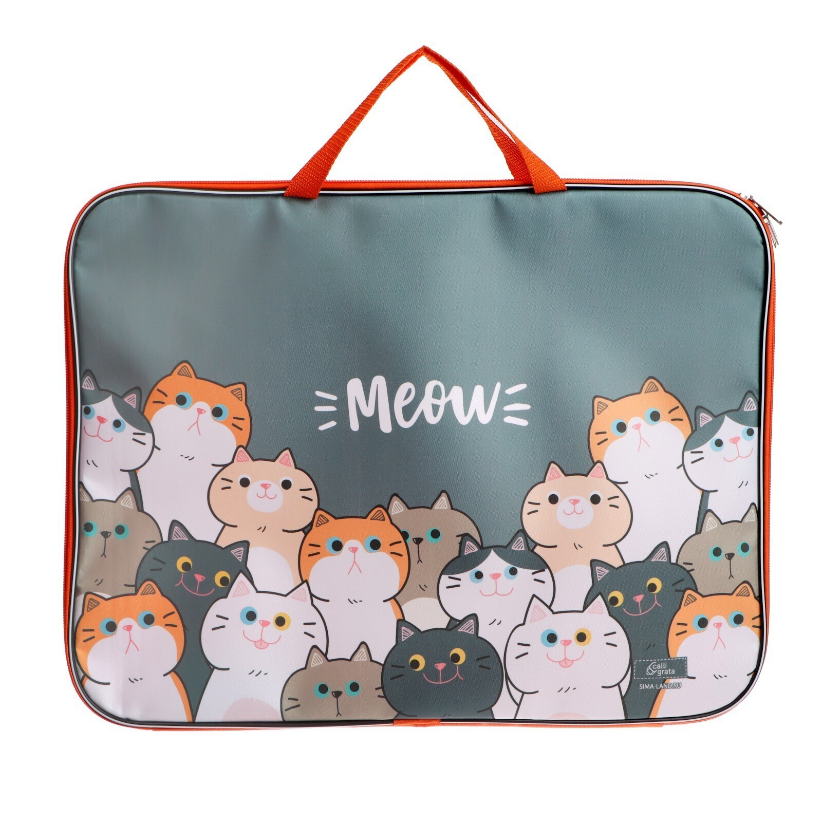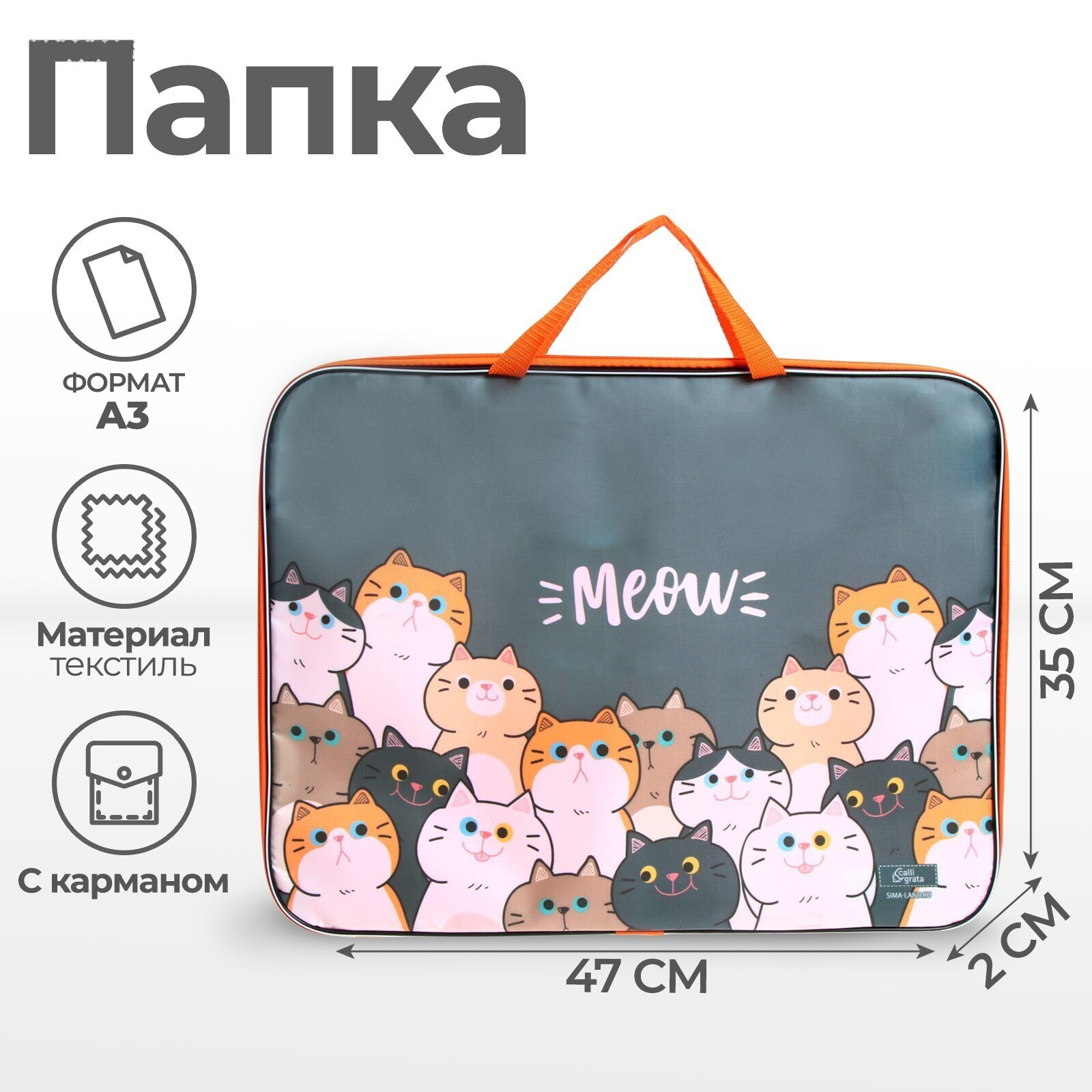 Папка для чертежей и рисунков А3, 470 х 350 х 20 мм, с ручками, текстильная, Calligrata "Коты"