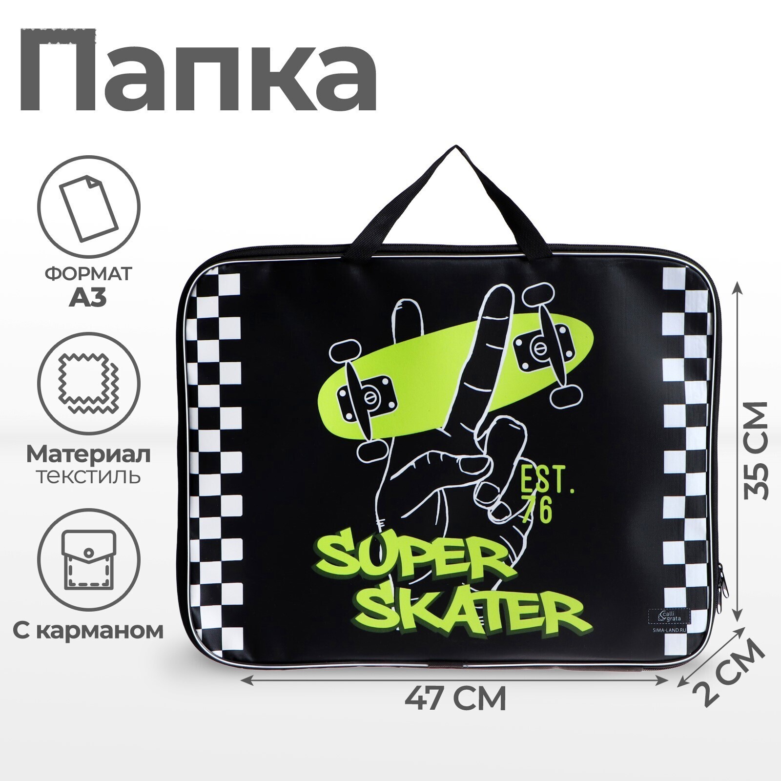 Папка для чертежей и рисунков А3, 470 х 350 х 20 мм, с ручками, текстильная, Calligrata "Скейт"