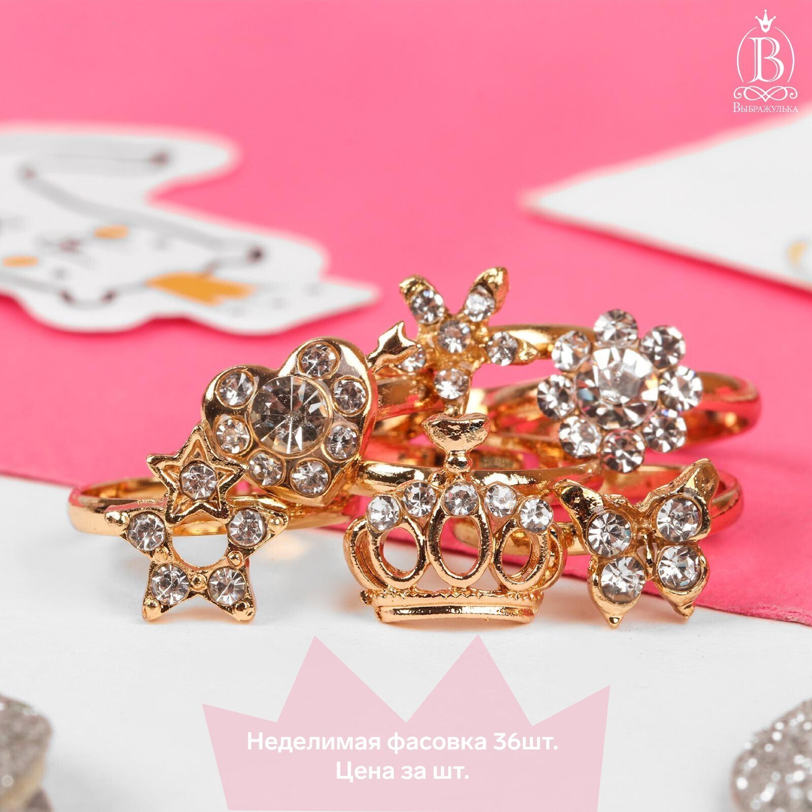 Кольцо детское "Выбражулька" ассорти в сердце, форма МИКС, цвет белый в золоте