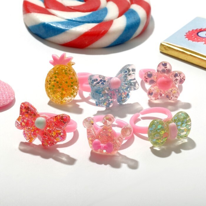 Кольцо детское "Ассорти" для принцессы, форма МИКС, цветное, безразмерное