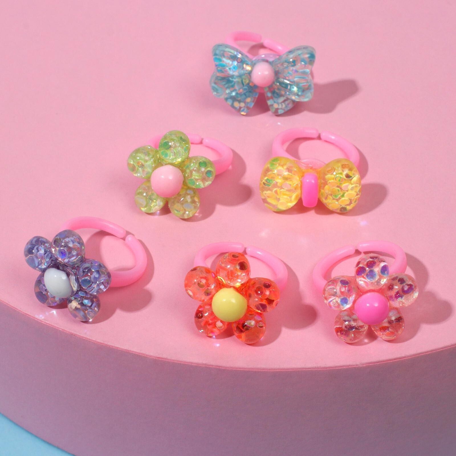 Кольцо детское "Ассорти" для принцессы, форма МИКС, цветное, безразмерное