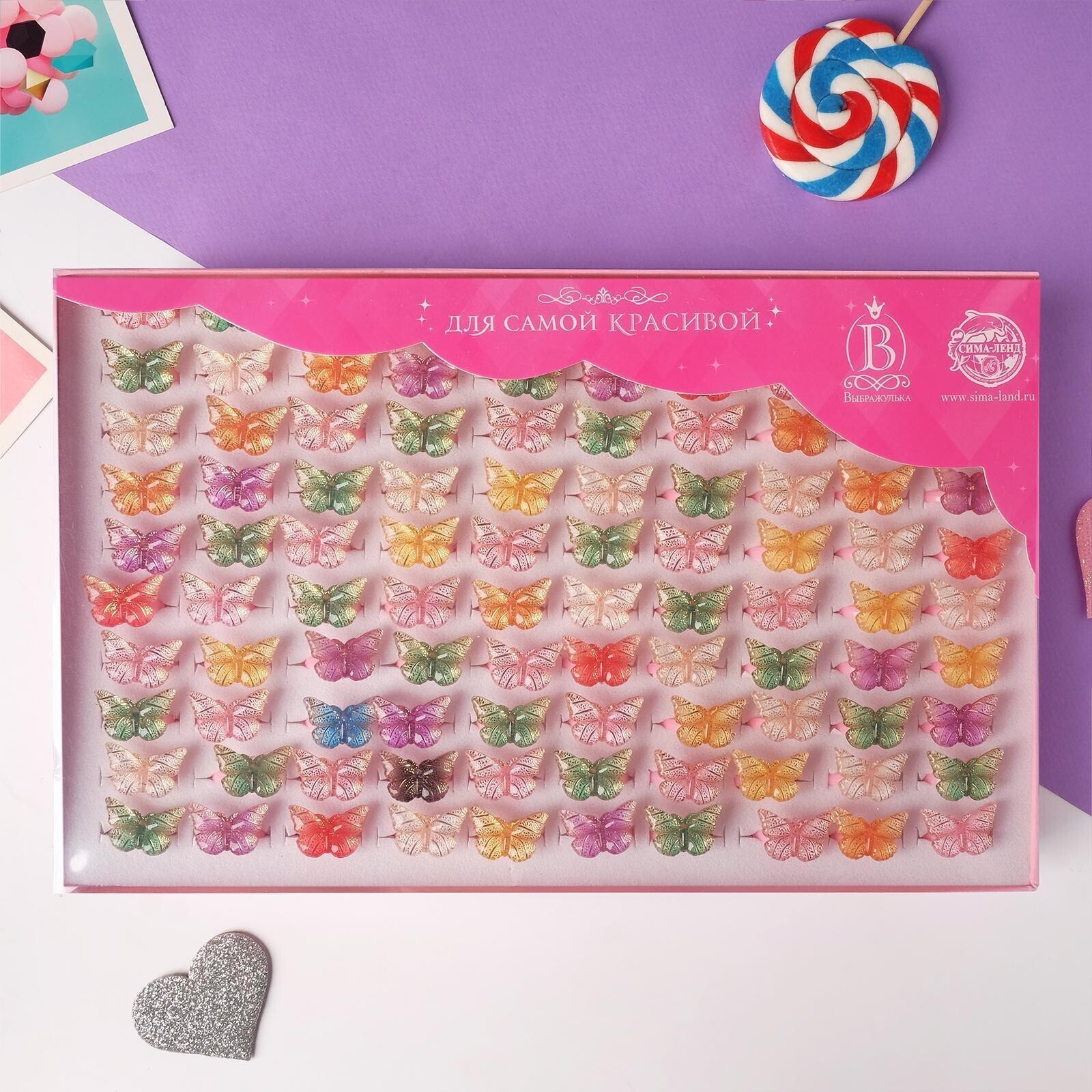 Кольцо детское "Выбражулька" бабочки блестящие, цвет МИКС, безразмерное