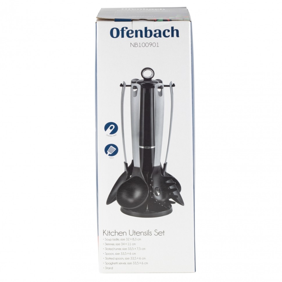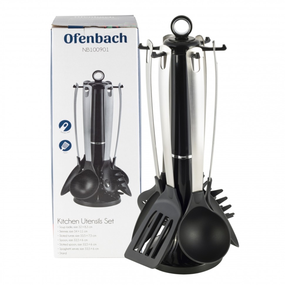 Нарушена упаковка! <309771> Набор кухонных принадлежностей с подставкой 7 пр. нейлоновые с ручкой из нержавеющей стали OFENBACH 100901