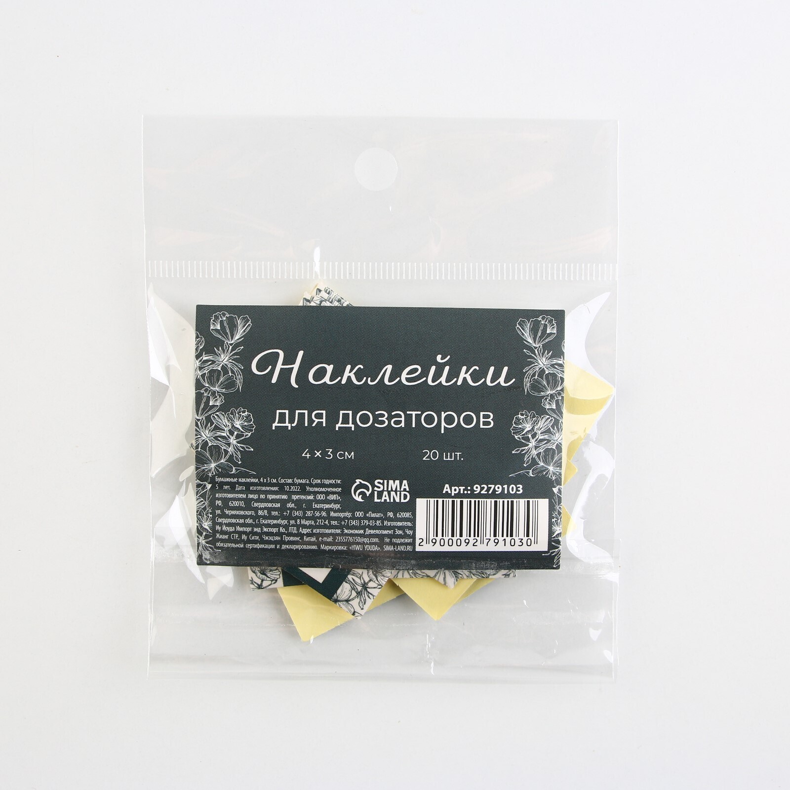 Набор бумажных наклеек на банки «Для дозаторов», 20 шт, белые цветы, 4 х 3 см