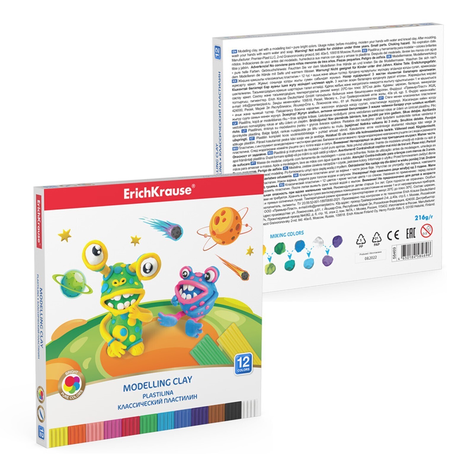 Пластилин 12цв 216г ErichKrause Cosmic Monsters, со стеком