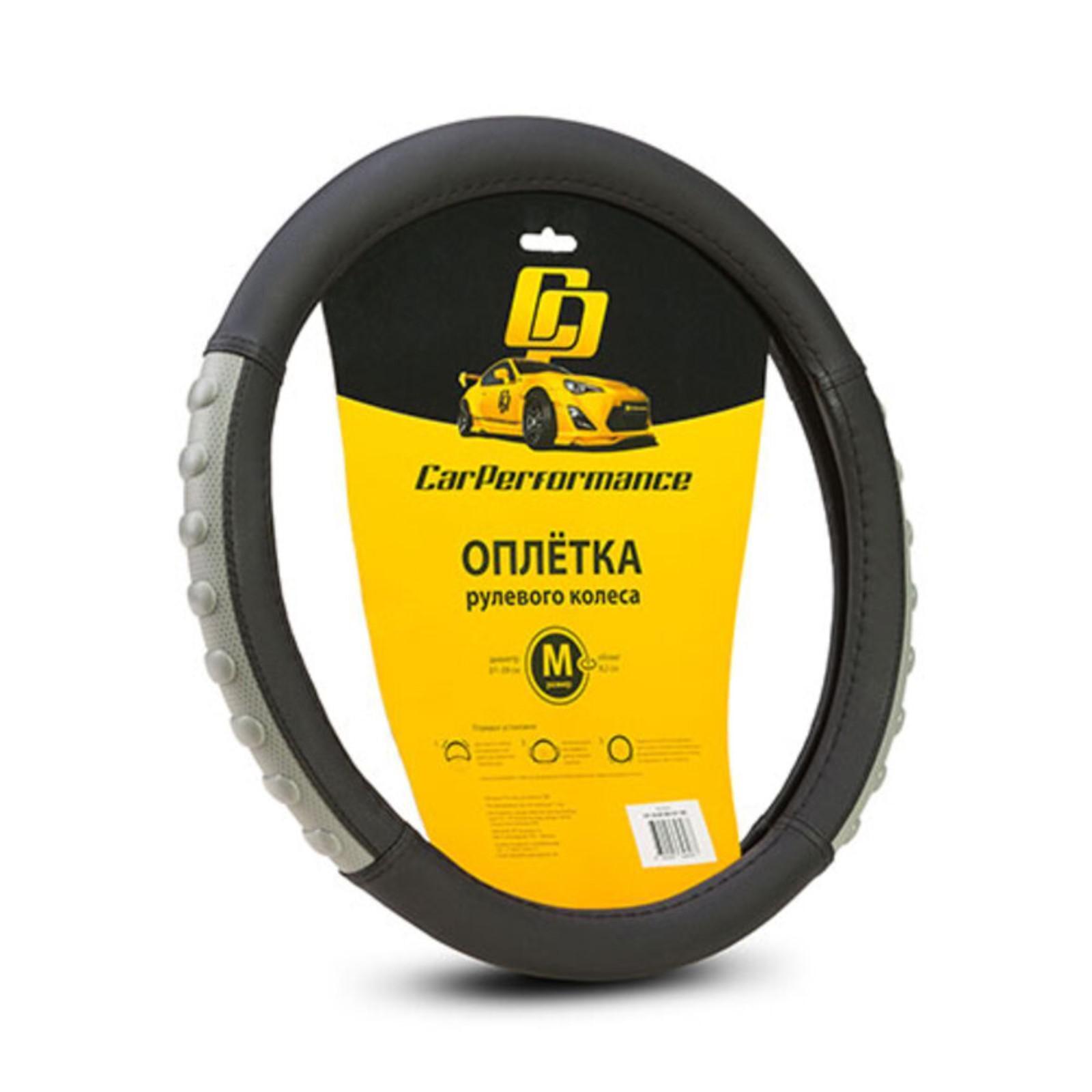 Оплётка руля CarPerformance, экокожа, с объёмными вставками CP-2040, чёрный/серый, разм. (М) 74139
