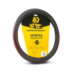Оплётка руля CarPerformance, экокожа, с контрастным рисунком CP-2033, чёрн./красный, разм(S) 74140