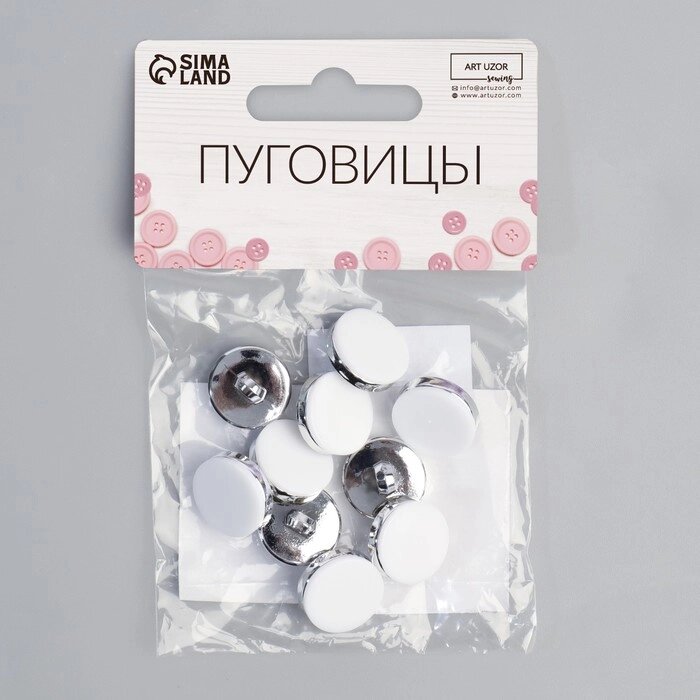 Набор пластиковых пуговиц на ножке, d = 15 мм, 10 шт, матовые, цвет белый/серебряный