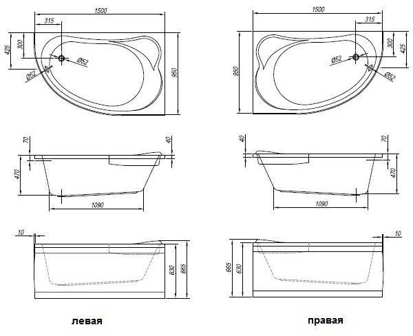 Размер ванны (Д.;Ш.;В.): 150x95x47 см