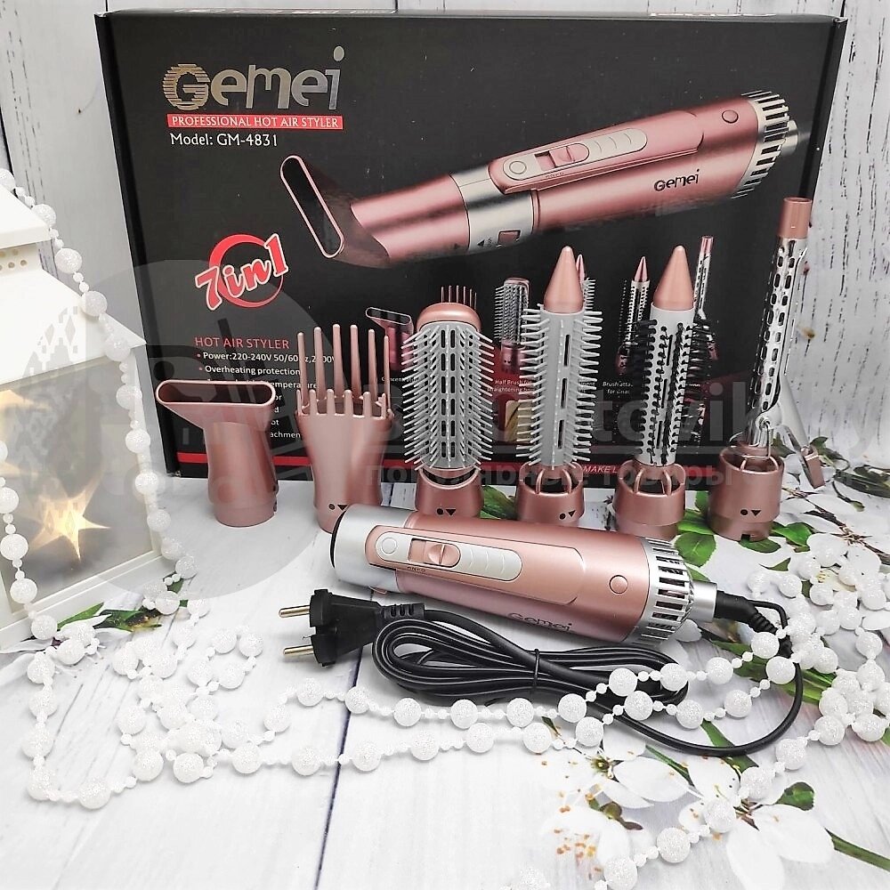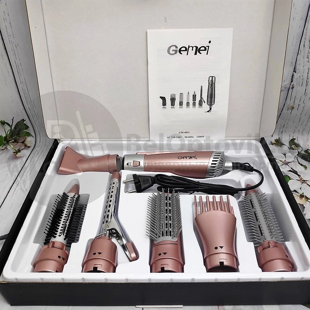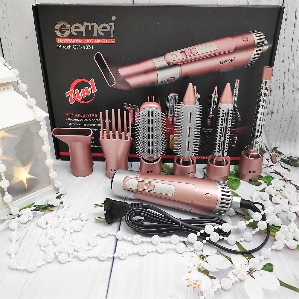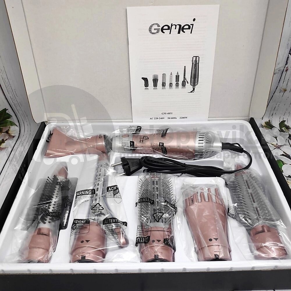 Уценка Мультистайлер - фен - плойка Gemei 7 в 1 Mod. GM-4831. Универсальная щетка - фен с 6 насадками
