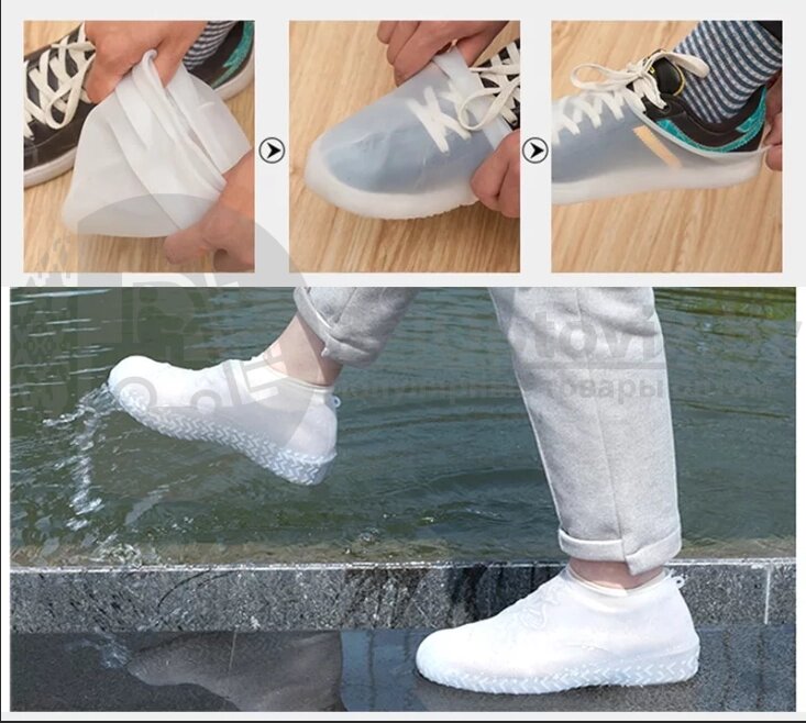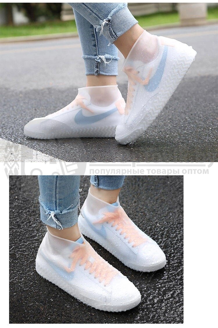 Бахилы (чехлы на обувь) от дождя и песка многоразовые силиконовые Waterproof Silicone Shoe. Суперпрочные Розовые S