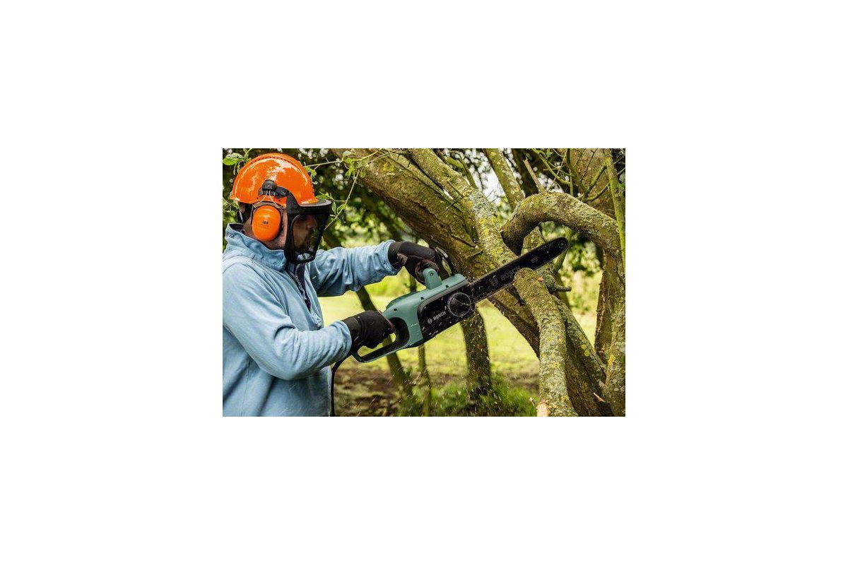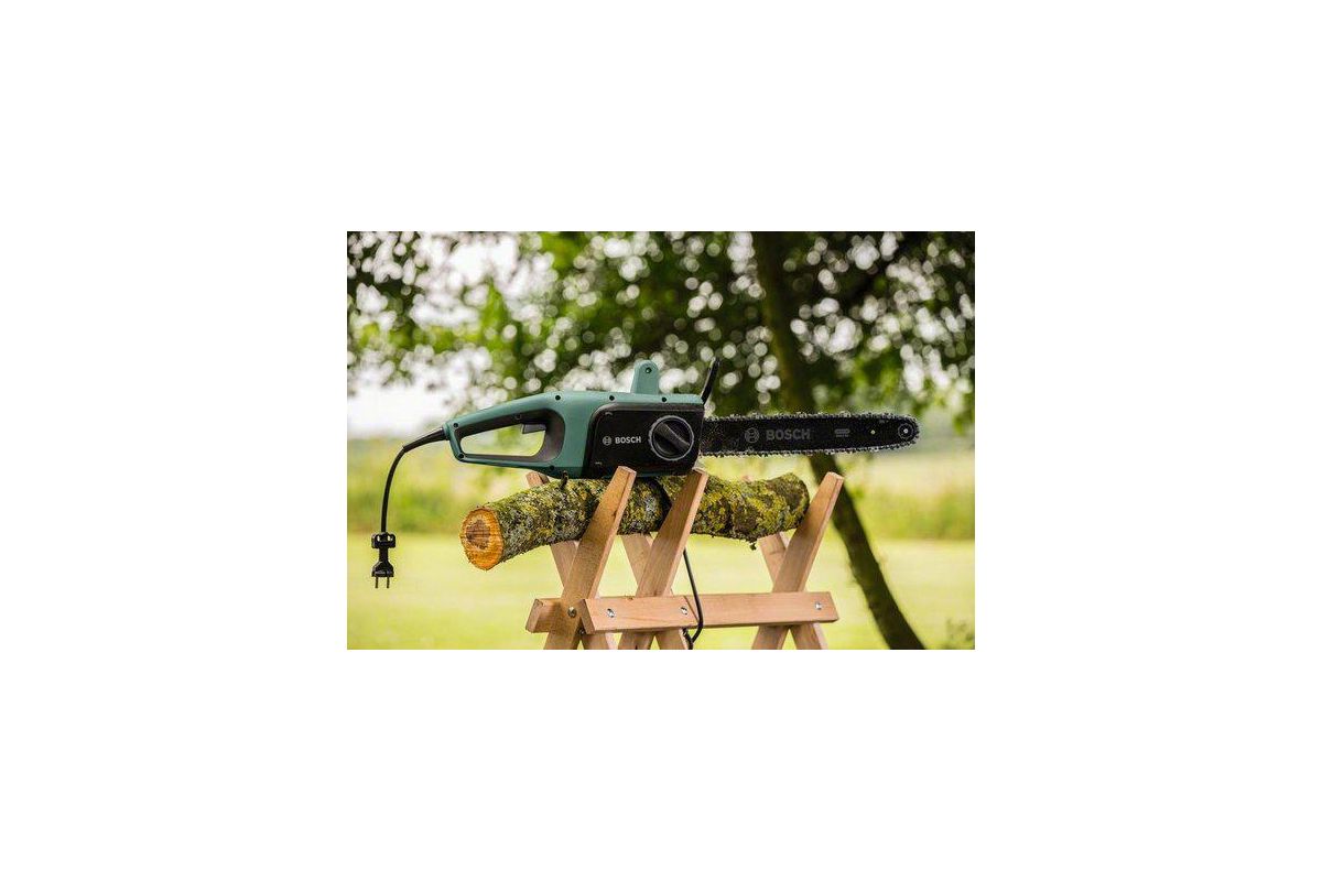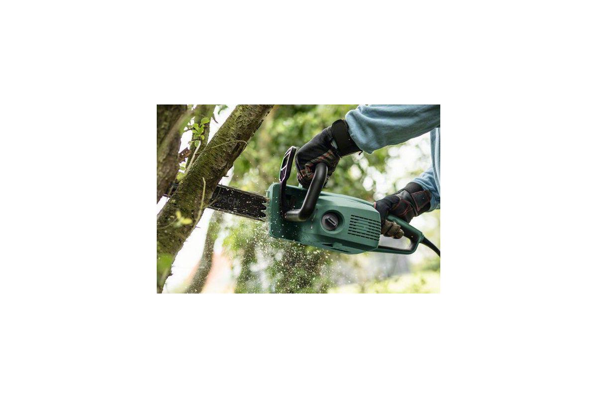 - Эта электропила проста в обращении и отличается маневренностью, что делает ее оптимальным инструментом для распиловки бревен, подрезки веток и деревьев малого и среднего размера.