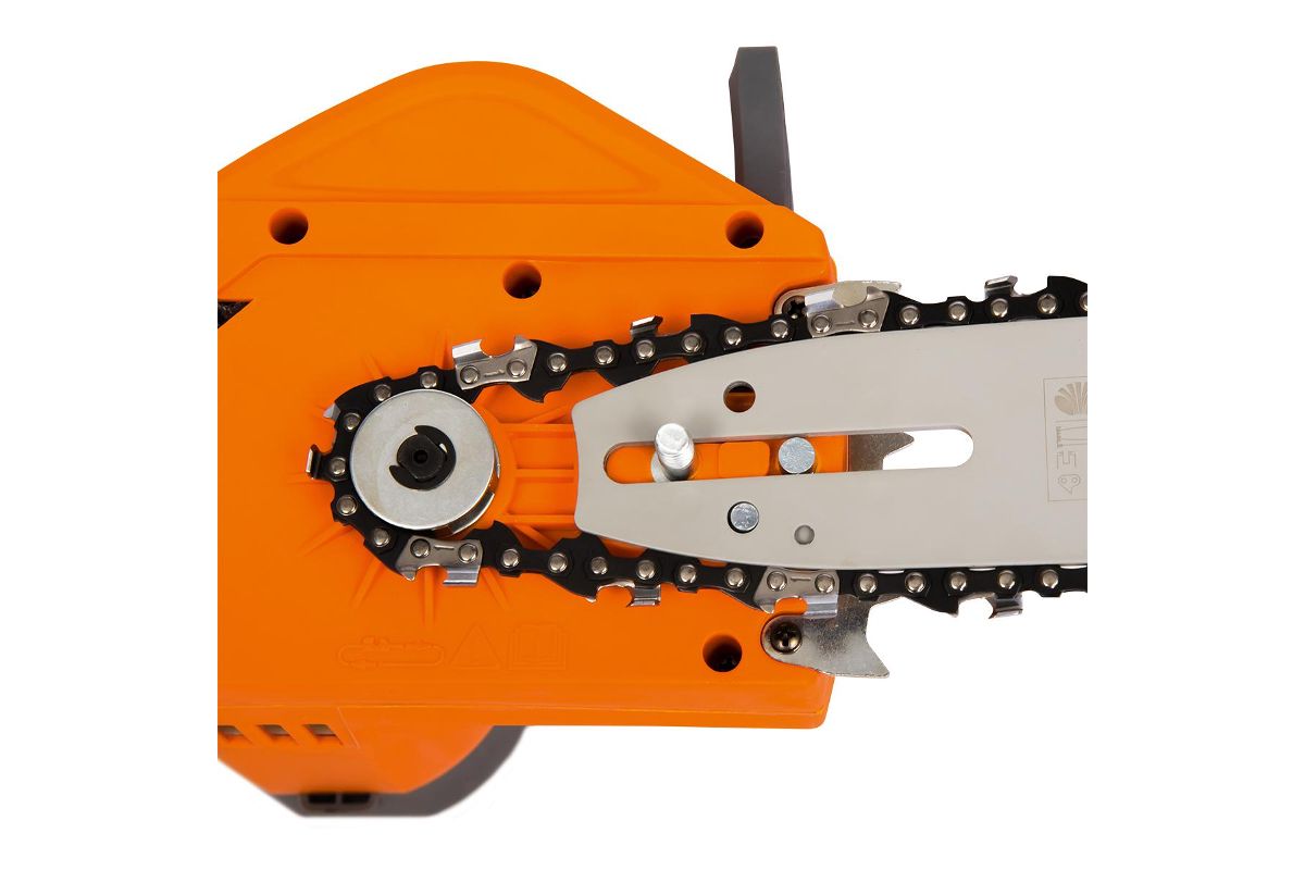 Моментальная остановка цепи. Механизм ленточного тормоза блокирует движение цепи в случае сильной отдачи, что снижает вероятность получения травм оператором. Мощность 1800 Вт
