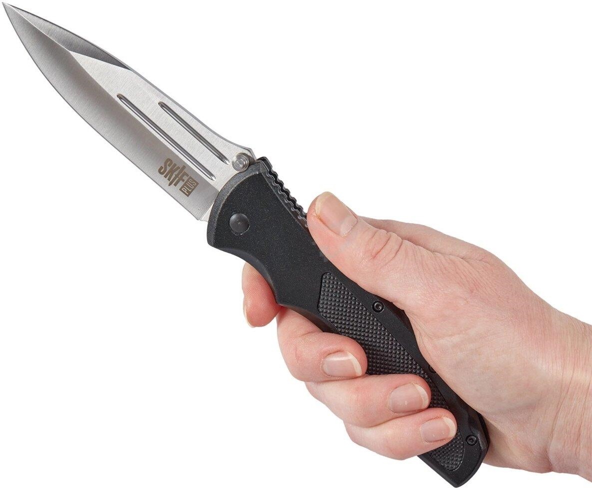 - Дополнительно блокировка лезвияоткрытие одной рукойподпальцевая выемкакрепление для ремешка