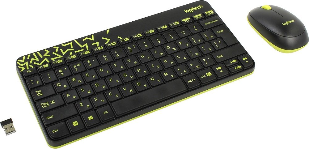 Беспроводное подключение; клавиатура - классическая; ширина 288 мм; мышь - оптическая; симметричная форма; 1000 dpi; количество кнопок - 3.