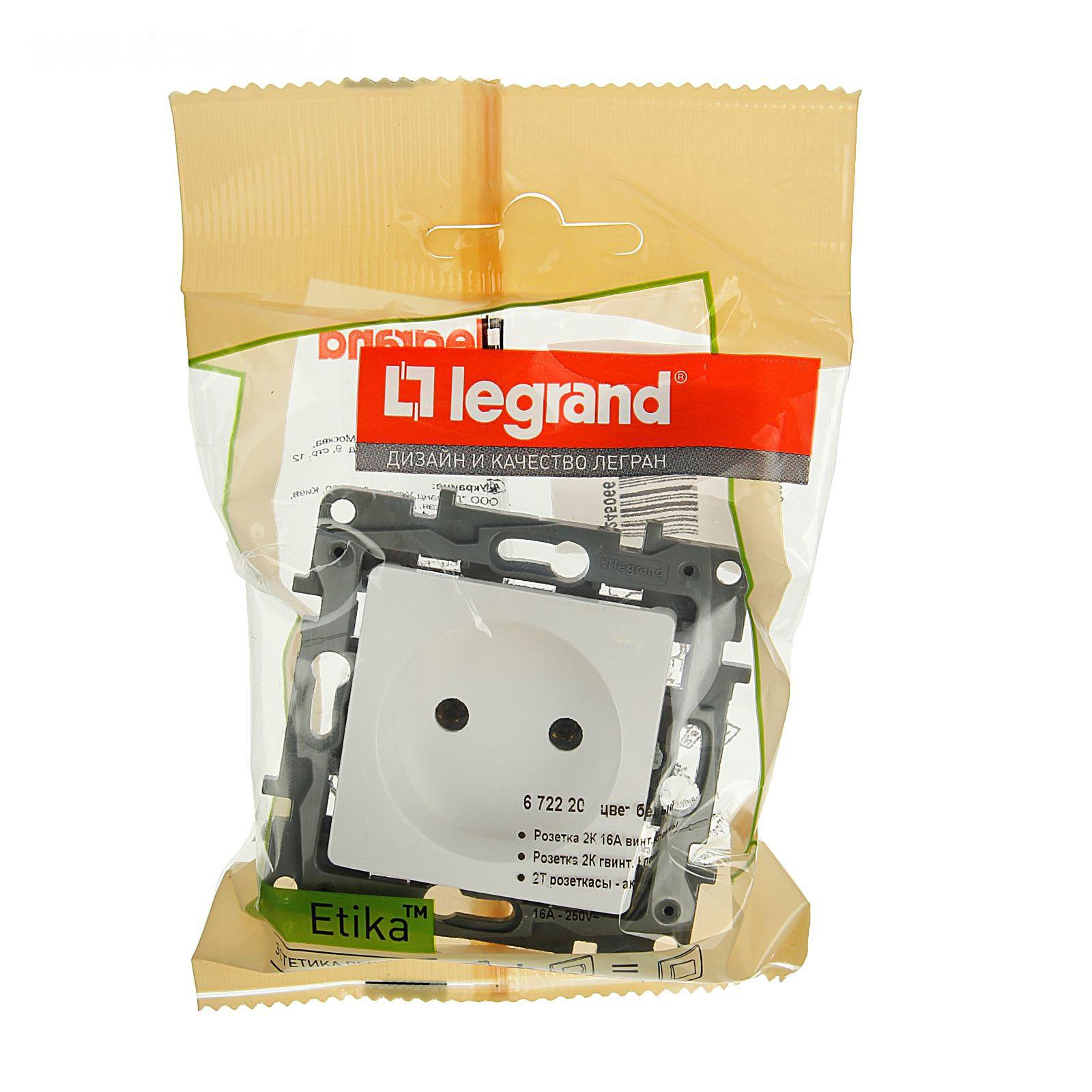 Розетка Legrand Etika 672220, 16 А, одноместная, скрытая, без з/к, белая