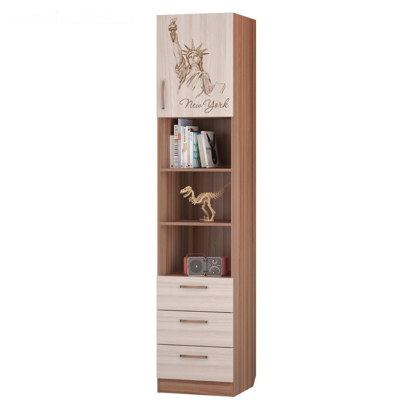 Шкаф для книг с ящиками "Вояж", 451х446х2136 мм, ясень тёмный, ясень светлый