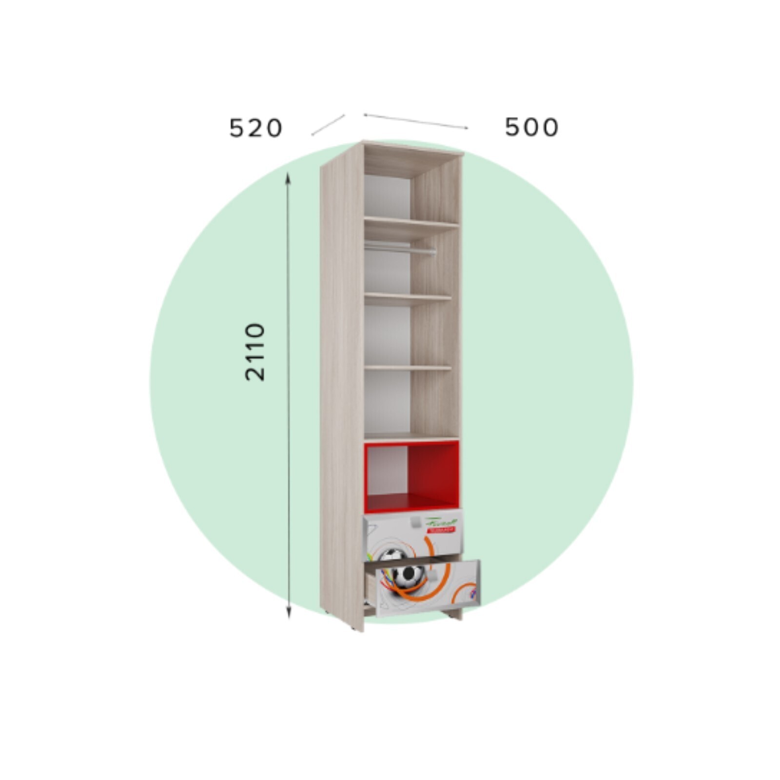 Пенал с ящиками ПН-15 Футбол 2110х500х520 Серый/Красный/Ясень Шимо Светлый/ Красный