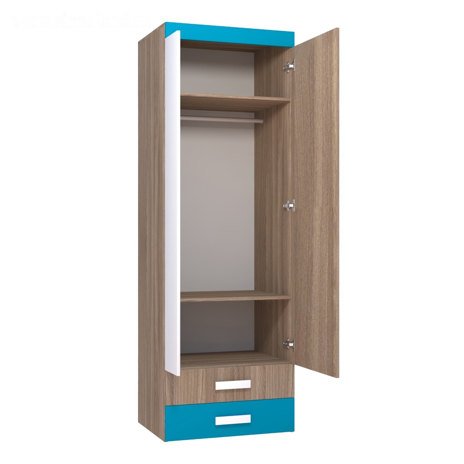 Шкаф Юниор 708х525х2098 Ясень шимо темный/Белая Аляска/Индиго