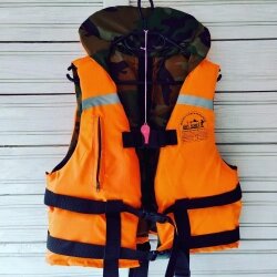 Жилет спасательный с подголовником (с наполнителем, ткань Oxford, оранж. хаки). Имеет доступ На вес до 110 кг