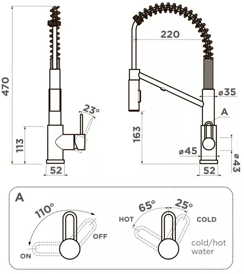 Высота смесителя - 470 мм