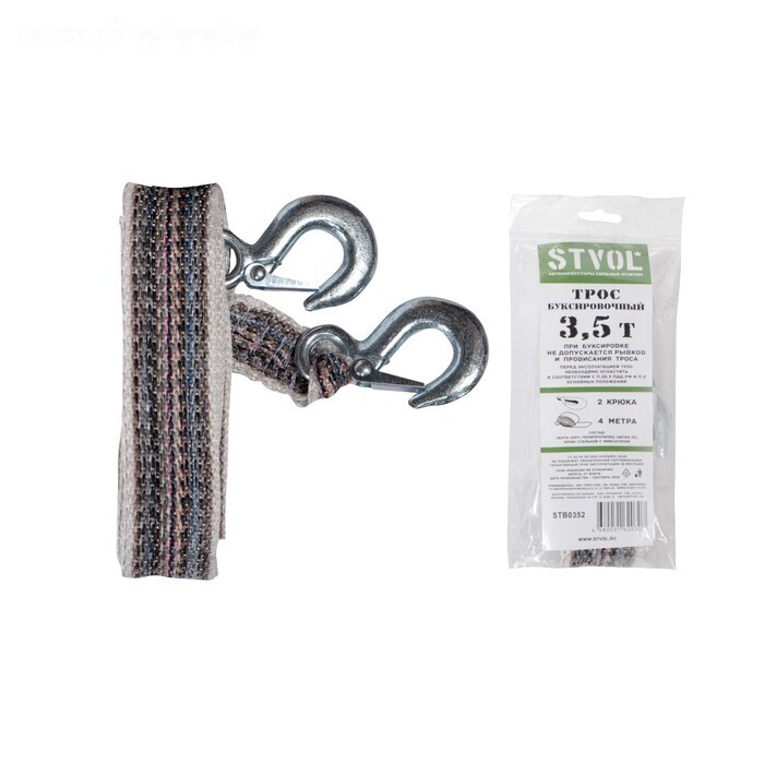 Трос буксировочный Stvol, 3,5 т, 2 крюка, 4 метра