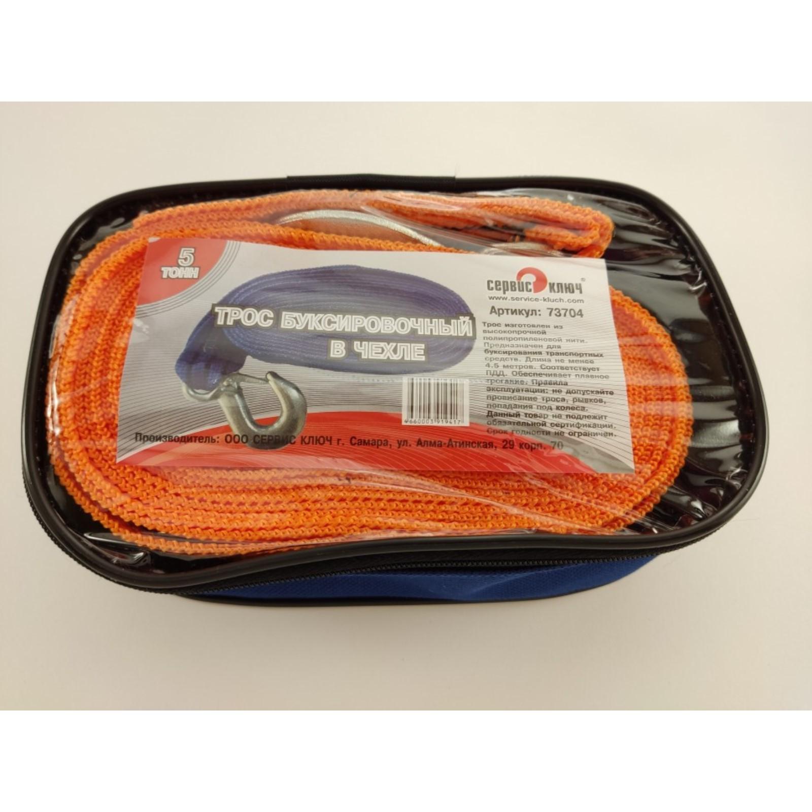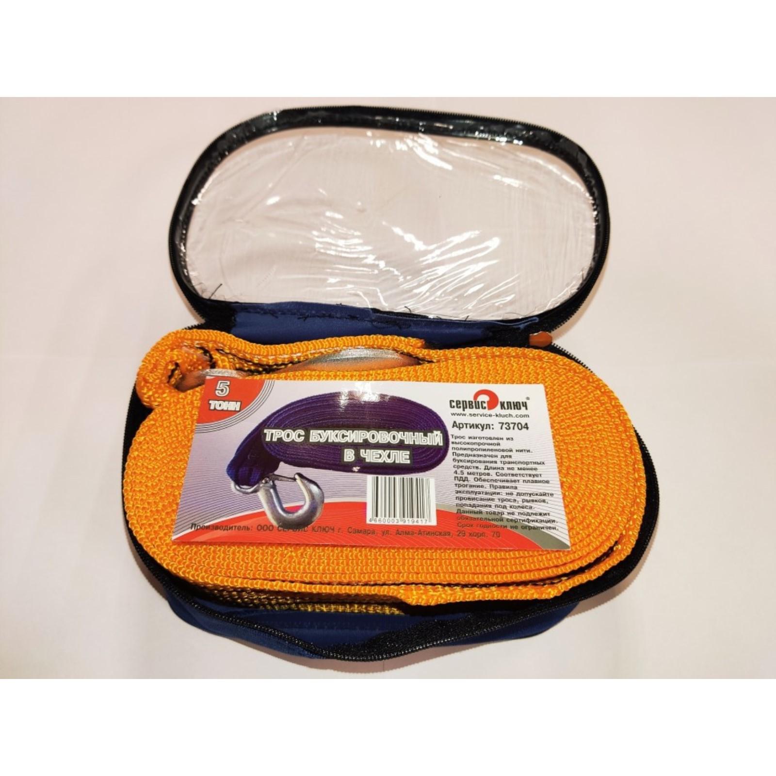 Трос-лента буксировочный Сервис Ключ, 5 т, 4.5 м, ширина ленты 50 мм, 2 крюка, в чехле