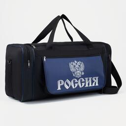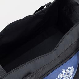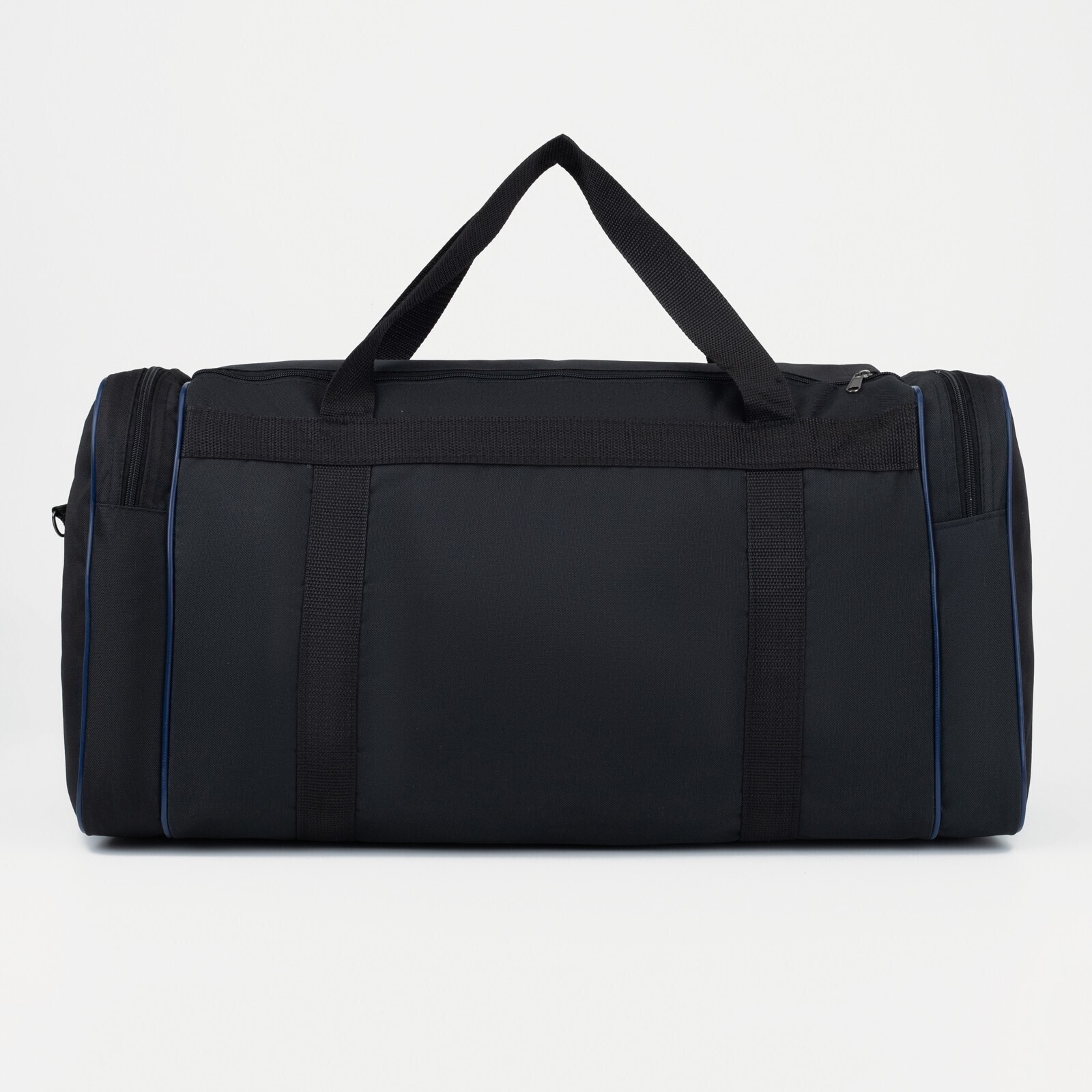 Сумка дорожная на молнии, 3 наружных кармана, длинный ремень, цвет чёрный/синий