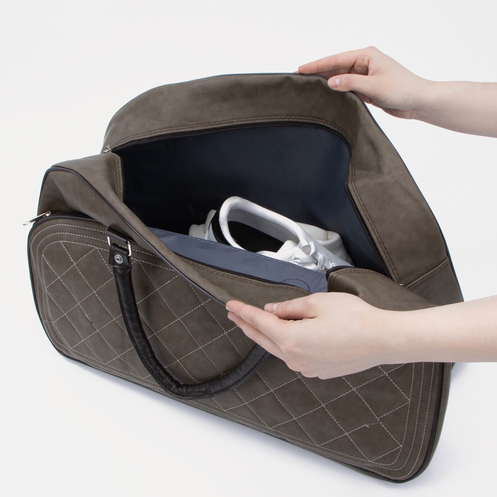 Сумка дорожная на молнии, наружный карман, длинный ремень, цвет серый